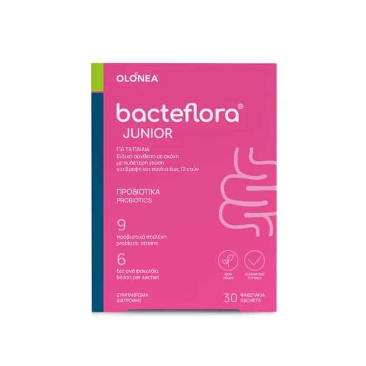 Το Bacteflora Junior-Olonea είναι ένα συμπλήρωμα διατροφής που περιέχει προβιοτικά για βρέφη και παιδιά έως 12 ετών για την υγεία και ομαλή λειτουργία του εντέρου και του ανοσοποιητικού συστήματος.