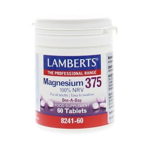 Το Lamberts Magnesium 375 είναι ένα ολοκληρωμένο συμπλήρωμα διατροφής που περιέχει τέσσερις μορφές μαγνησίου (υδροξείδιο, οξείδιο, κιτρικό και ανθρακικό μαγνήσιο) και αποδίδει το 100% της Συνιστώμενης Ημερήσιας Πρόσληψης Μαγνησίου (375 mg) σε μια ταμπλέτα.