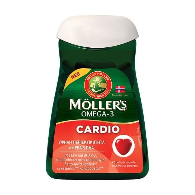 Το Moller’s Omega-3 Cardio είναι ένα ολοκληρωμένο συμπλήρωμα διατροφής που περιέχει συμπυκνωμένο ιχθυέλαιο με υψηλή περιεκτικότητα σε EPA και DHA για την υγεία της καρδιάς.